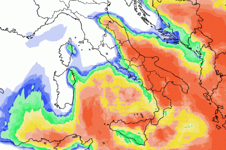 L’aria fredda approfondirà una bassa pressione nel mar Adriatico tra giovedì e venerdì: questa innescherà piogge diffuse su tutto il centro-sud ed in particolare sulle regioni adriatiche dove gli accumuli di pioggia cresceranno rapidamente e diffusamente. Nel frattempo avremo un graduale miglioramento al nord grazie all’avanzata di aria più fredda e più secca.