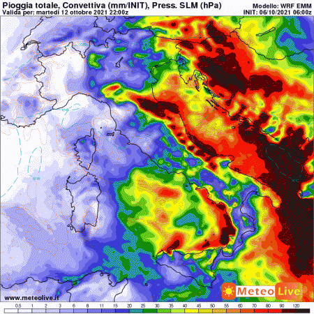 Domenica 10 ottobre: insistono piogge e rovesci persistenti su Molise, Puglia, Basilicata, Calabria Sicilia. Fenomeni più irregolari su Campania, Molise, Abruzzo. Possibile ritorno di temporali sparsi sul nord-est e l’alto Adriatico a causa di aria ancor più fredda in arrivo in alta quota. Temperature sotto le medie del periodo.