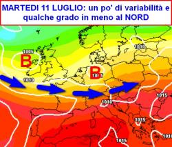 Se volete delucidazioni sul tempo a lungo termine leggete la rubrica "Fantameteo"; per il momento ecco la linea di tendenza del tempo fino a mercoledì 12 luglio.