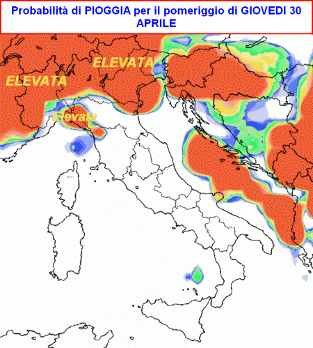 La mappa della probabilità di pioggia imbastita questo pomeriggio dal modello americano per la giornata in parola è molto eloquente: