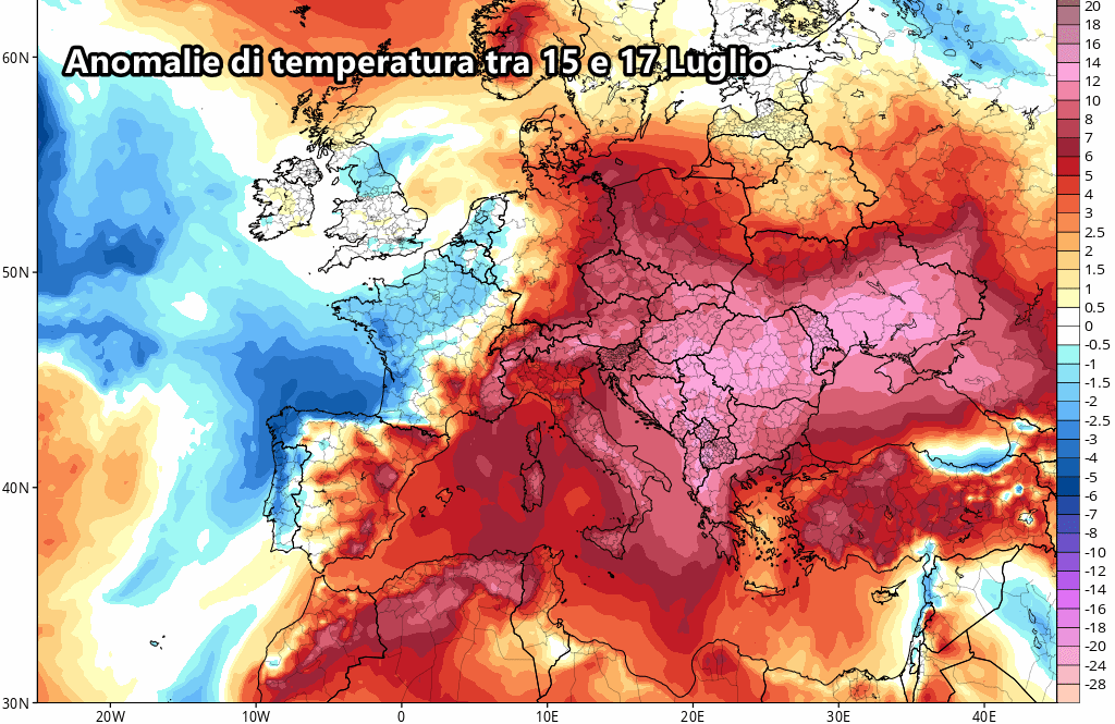 Tuttavia, il settentrione non vedrà sempre e solo bel tempo, come invece sarà sul resto d’Italia: l’anticiclone non sarà particolarmente coriaceo sulle regioni del Nord e, di conseguenza, qualche disturbo più fresco in altissima quota potrebbe generare improvvisi e violenti temporali, soprattutto tra giovedì sera e sabato. È chiaro che questi temporali potrebbero rivelarsi particolarmente violenti, considerando che scorreranno su un terreno particolarmente pregno di energia, caratterizzato da elevatissime concentrazioni di vapore acqueo e calura nei bassi strati.