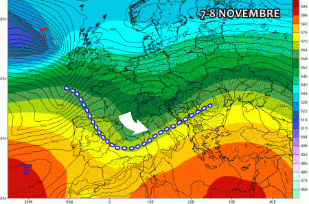 Venerdì 10 novembre: possibile ondata di maltempo al nord e centro Italia, scirocco in rinforzo al sud. Temperature in aumento.
