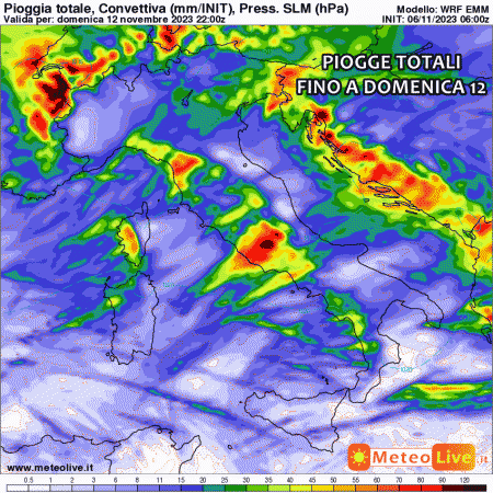 Martedì 7 novembre: addensamenti sul lato tirrenico, specie tra Lazio e Campania, con piogge e rovesci. Veloci piogge in Sardegna, Liguria orientale, Toscana, Lombardia, Nordest, Umbria.