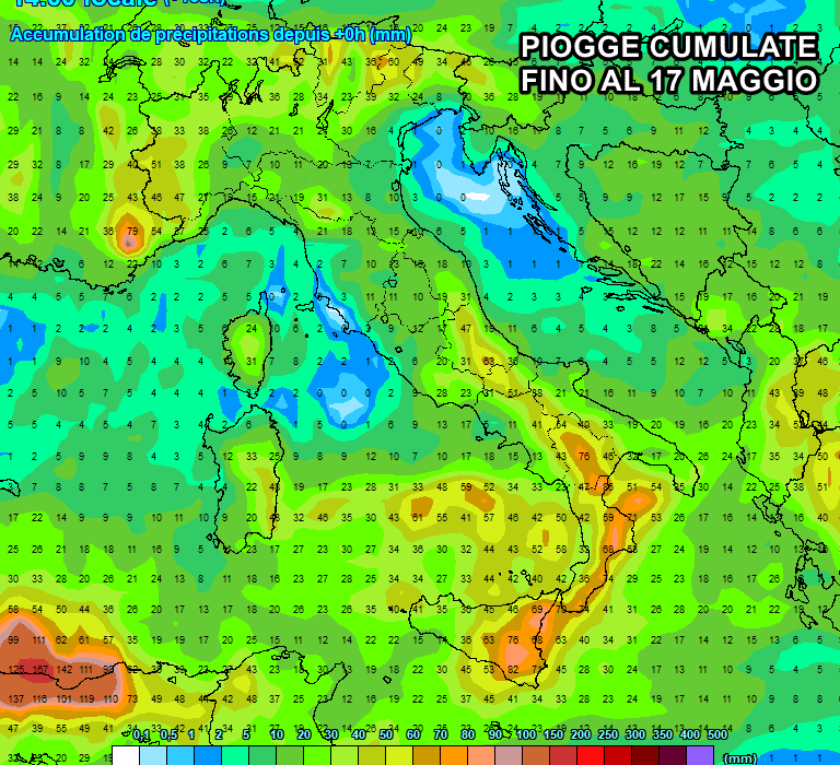 Sul resto d’Italia, questo ciclone non avrà effetti. Tuttavia l’instabilità pomeridiana e serale legata alle correnti fredde su citate, sarà ben presente. Eloquenti gli accumuli previsti nei prossimi sette giorni: