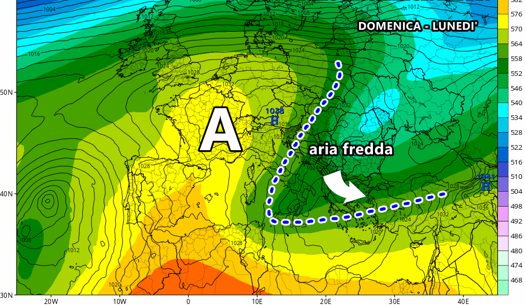Domenica, un ultimo fronte freddo attraverserà l’Italia, portando fenomeni rapidi ma intensi soprattutto sulle regioni del Centro-Sud. In questa fase, saranno ancora possibili temporali e un ulteriore abbassamento delle temperature, soprattutto nelle zone appenniniche e lungo le coste adriatiche. Nonostante ciò, i fenomeni risulteranno di breve durata, aprendo la strada a un cambio di scenario.