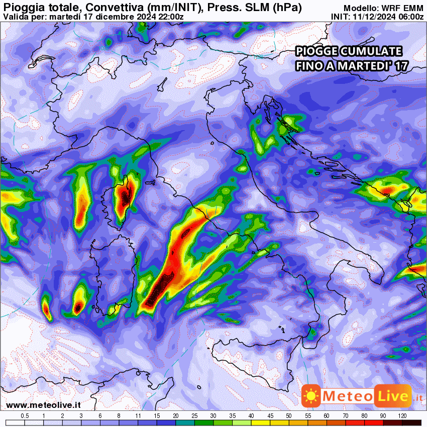 Tutta la pioggia prevista fino al 17 Dicembre: