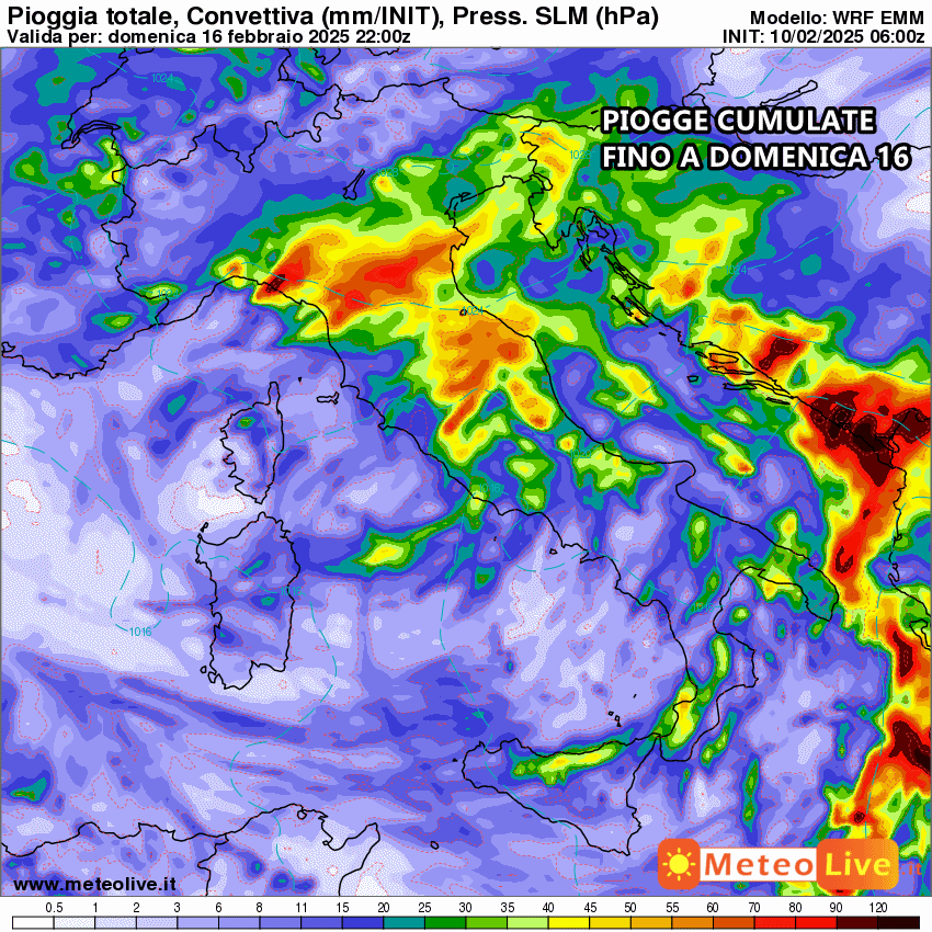 Tutta la pioggia prevista fino al 16 Febbraio: