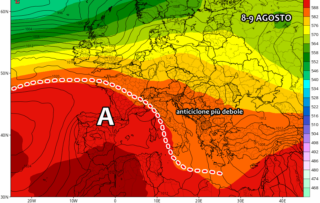 Sabato 10 Agosto: anticiclone in repentino rinforzo ovunque, tempo più stabile e caldo in aumento.