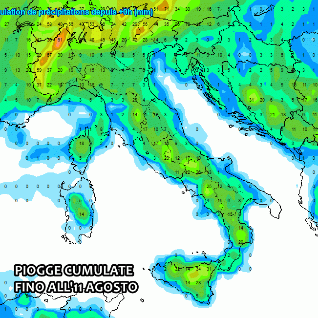 Lunedì 12 Agosto: presunto indebolimento dell’anticiclone con rischio violenti temporali al nord e zone interne del centro-sud, da confermare!