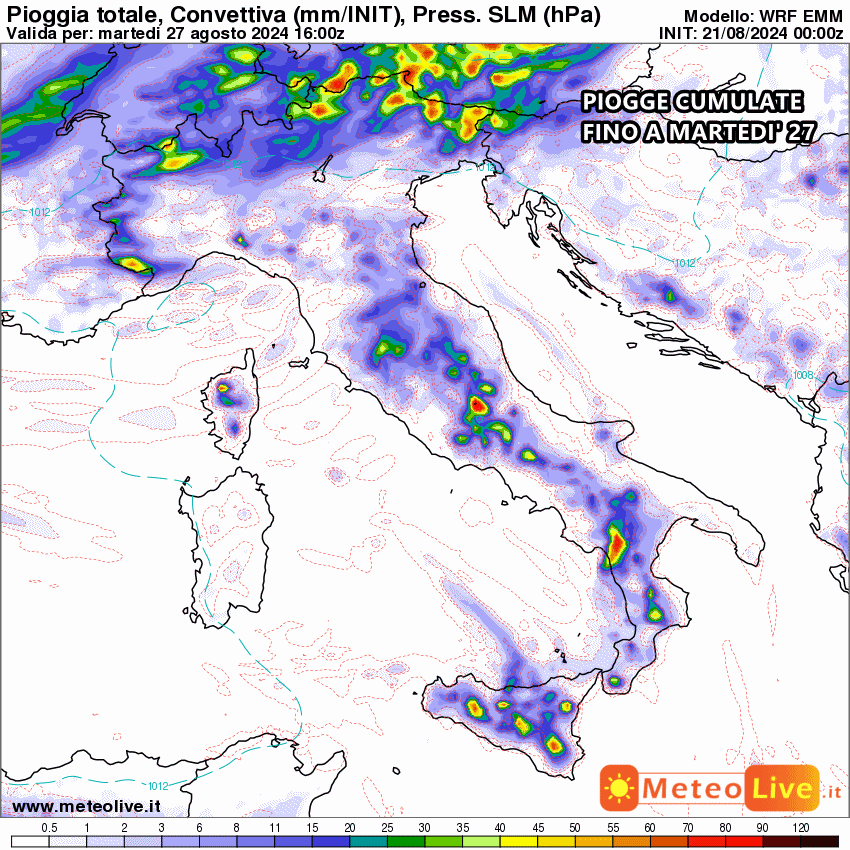 Martedì 27 Agosto: rovesci e temporali sparsi su centro e sud, migliora al nord. Temperature in calo ovunque.