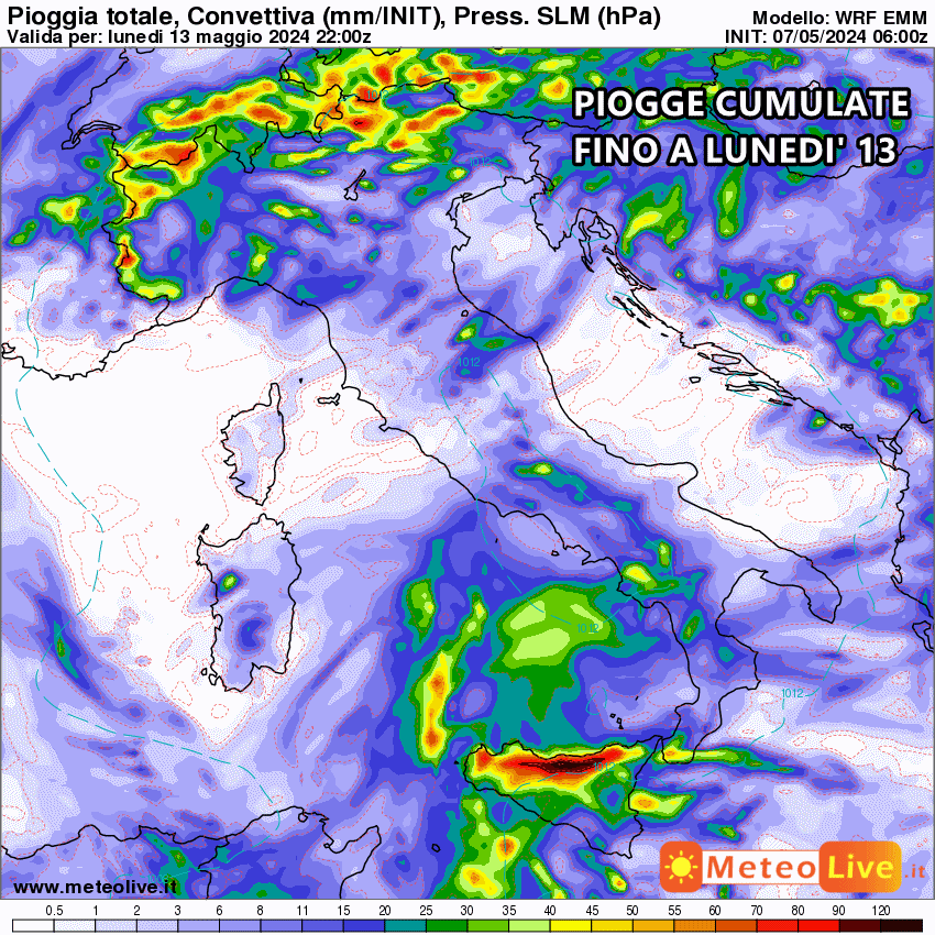 Il maltempo sta interessando gran parte del Centro-Nord, come ampiamente preannunciato nei giorni scorsi. Tutto merito di una depressione che si è approfondita all’interno del Mediterraneo da questa notte e che sta generando tanti acquazzoni e temporali localmente di forte entità. L’obiettivo finale di questa perturbazione sarà l’estremo Sud, dove effettivamente avremo gli accumuli di pioggia più sostanziosi tra mercoledì, giovedì e le prime ore di venerdì. Addirittura in Sicilia si prevedono punte di oltre 100 mm di pioggia, specie nelle aree interne tra il Palermitano e Messinese, in quelle zone duramente colpite dalla siccità negli ultimi mesi.