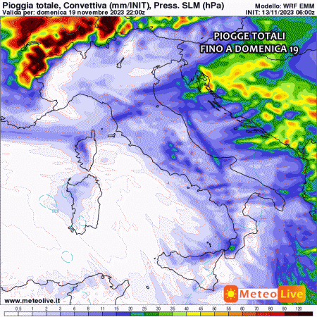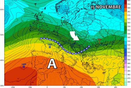 Martedì 14 novembre: anticiclone su tutta Italia, nubi basse sulle regioni tirreniche con rari piovaschi. Nebbie sparse in Val Padana, rischio piogge sulle Alpi di confine con neve oltre 2500 metri. Temperature in aumento.