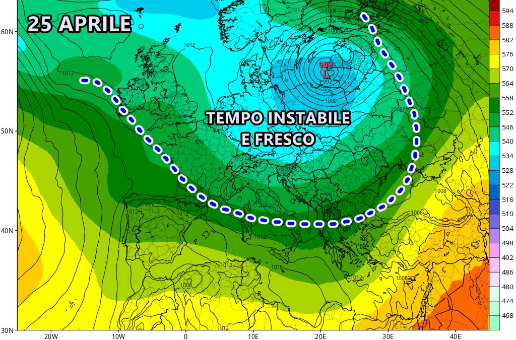 Giovedì 25 Aprile: Festa della Liberazione incerta, col rischio di nuove incursioni instabili con piogge e temporali. Alta pressione lontana.