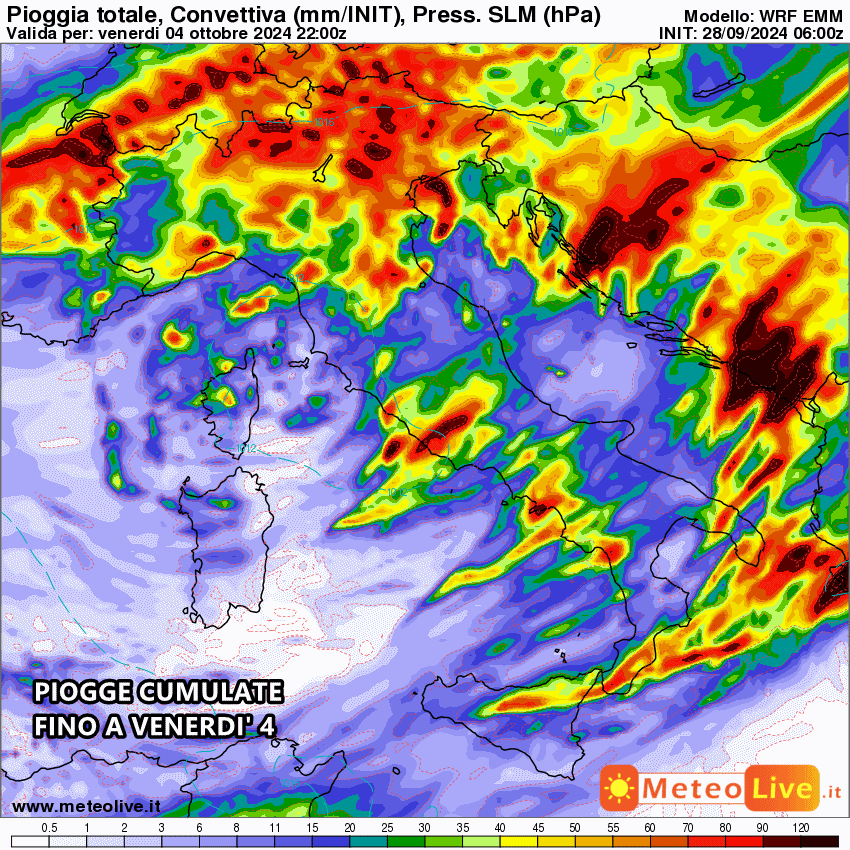 Tutte le piogge cumulate fino al 4 Ottobre: