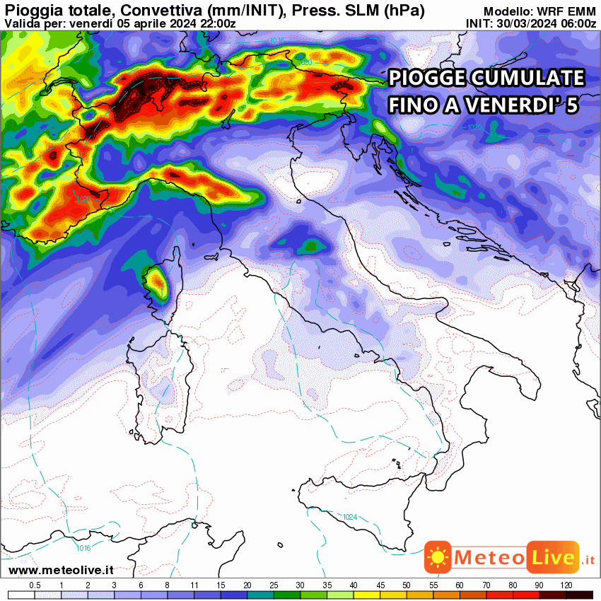 Lunedì 1 Aprile: Continua il maltempo al nord, specie sul Nordest. Temporali dal pomeriggio anche sul centro Italia, entro sera fenomeni anche su Puglia e Campania. Caldo anomalo al sud.