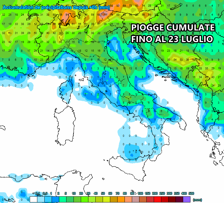 Ecco le piogge cumulate fino al 23 Luglio: