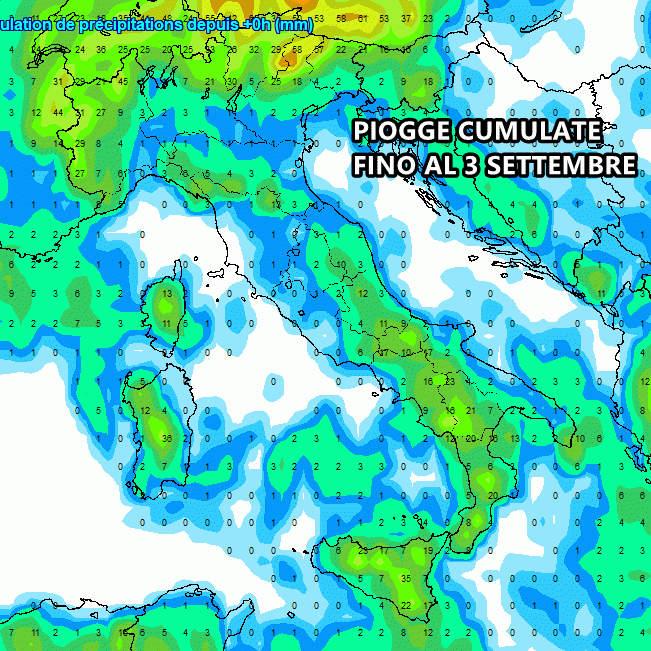 Tutte le piogge cumulate fino al 3 Settembre: