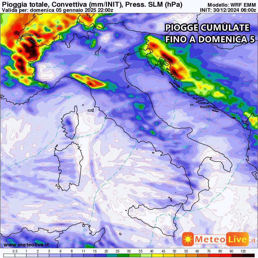 Tutta la pioggia prevista fino al 5 Gennaio: