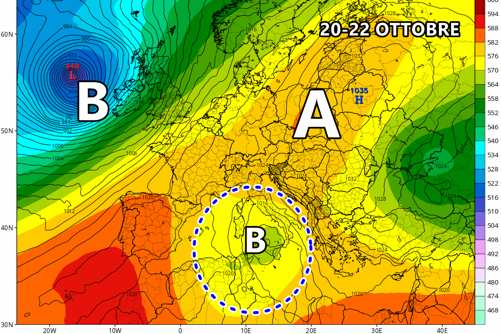 Sarà un’ondata di maltempo certamente importante, considerando che si ritroverà letteralmente bloccata nel “mare nostrum” per più giorni consecutivi. Ad est, infatti, la strada è sbarrata dall’anticiclone, ragion per cui il maltempo non ha modo di fuggire via dall’Italia. Insomma, il ciclone sarà stazionario e garantirà precipitazioni frequenti e nubifragi stazionari su diverse regioni.