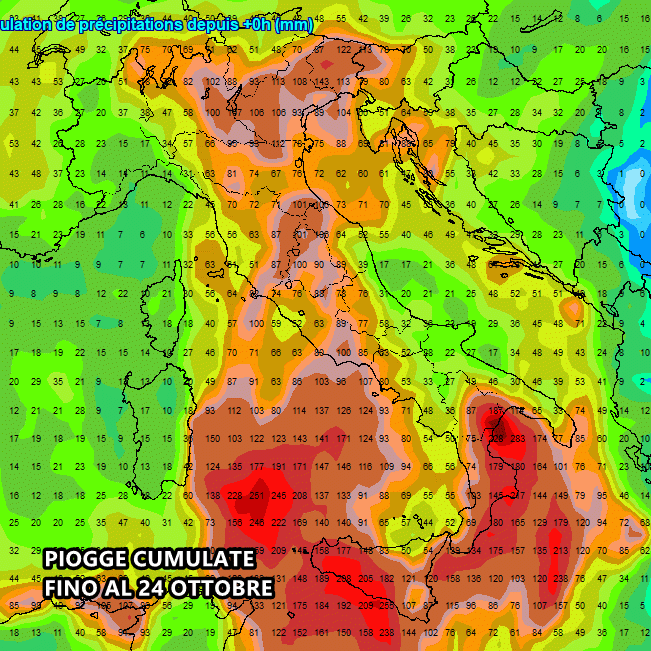 Tutte le piogge cumulate fino al 24 Ottobre: