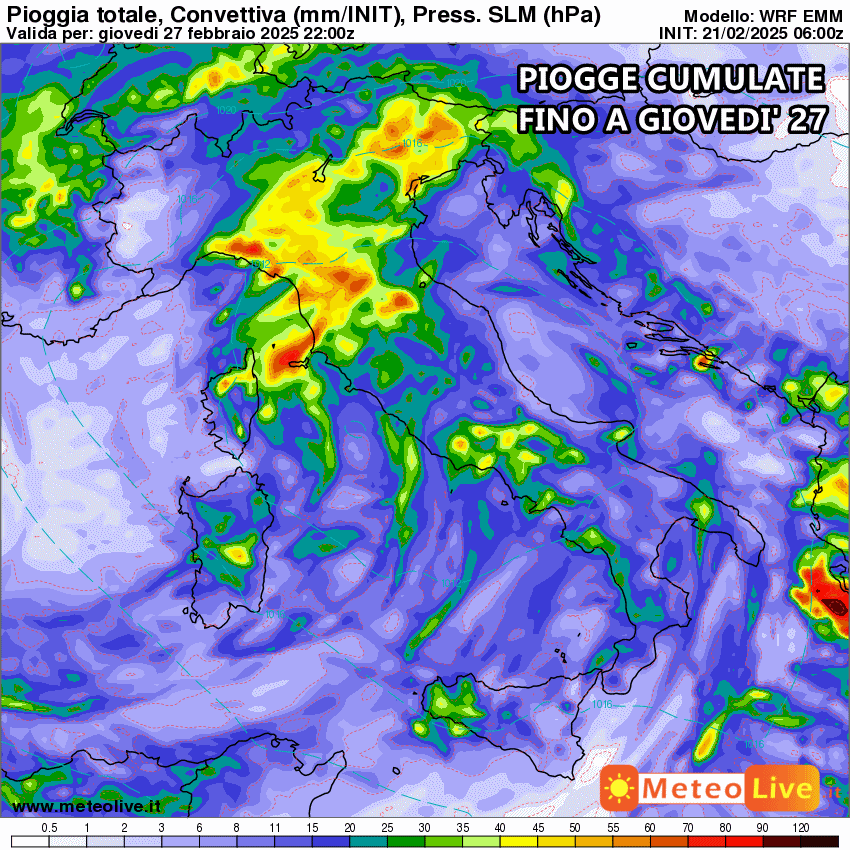 Tutta la pioggia prevista fino al 27 Febbraio: