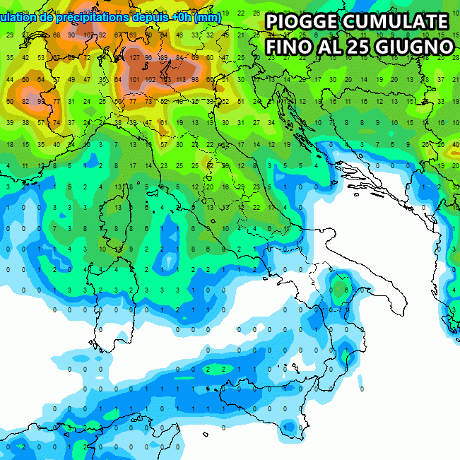 Le piogge cumulate fino al 25 Giugno: