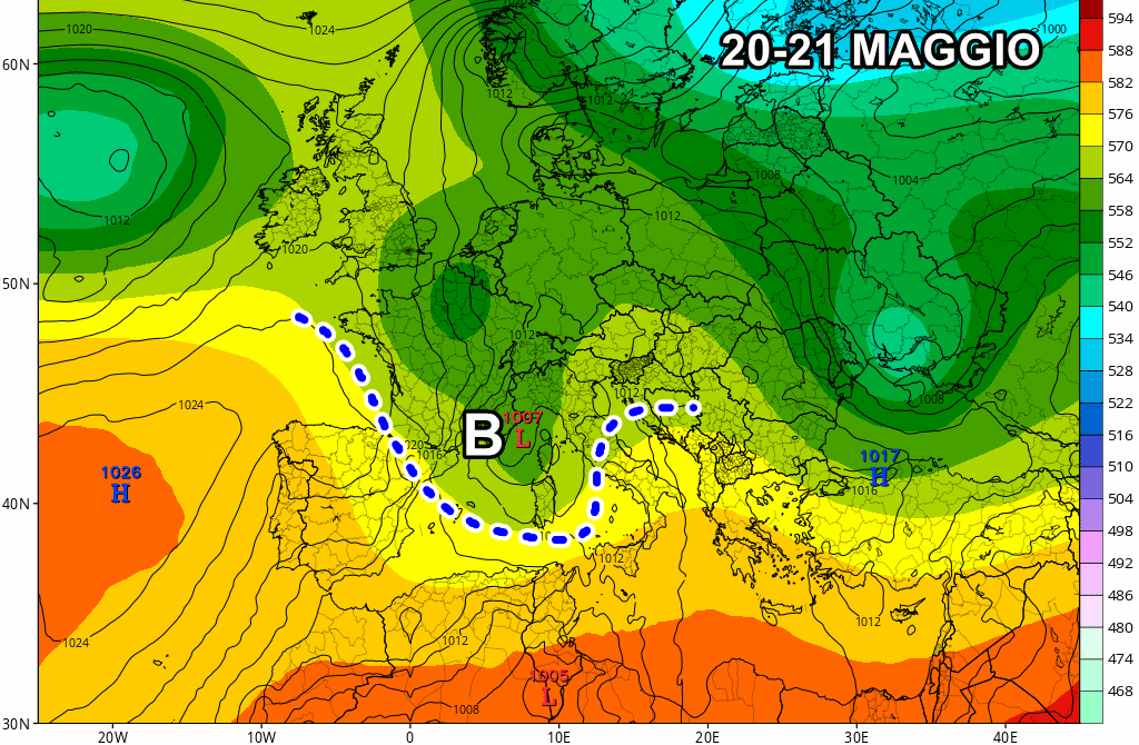 Il tempo peggiorerà nuovamente nel corso della prossima settimana, in particolar modo tra martedì 20 e mercoledì 21 maggio, a causa dell’ennesima perturbazione pronta a investire buona parte della penisola. Anche in questo caso si tratterà di una depressione particolarmente profonda, che potrebbe prender vita tra la Corsica e il Mar Ligure.