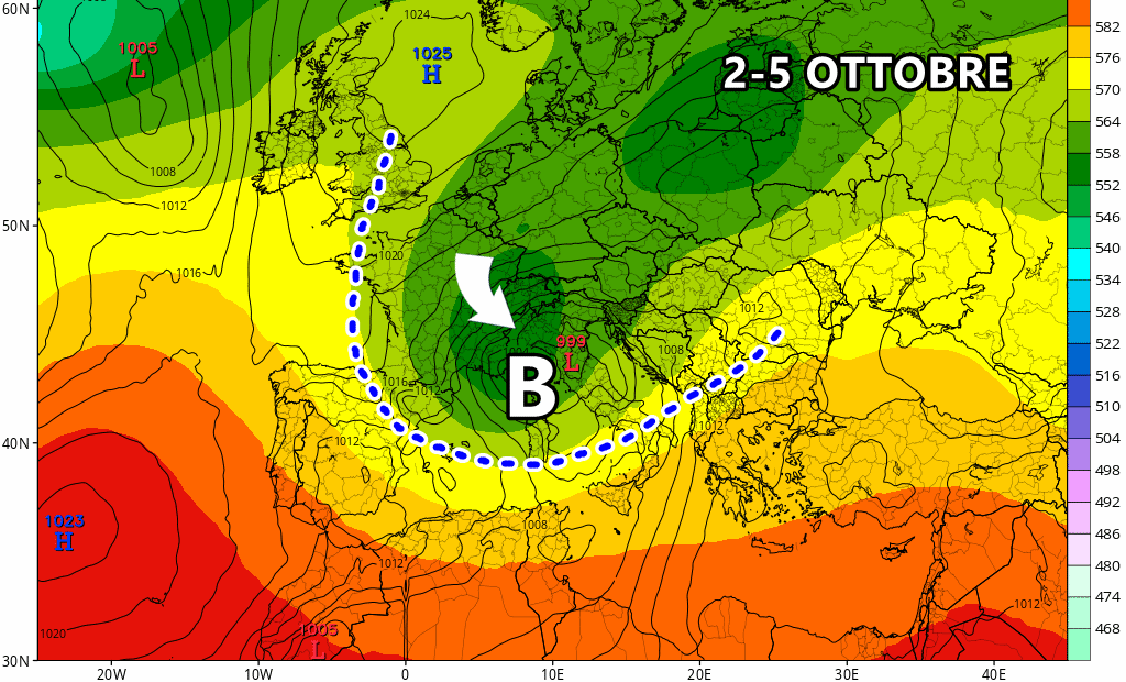 Giovedì 3 Ottobre: ciclone insidioso nel Mediterraneo. Rischio al centro Italia, piogge sparse al nord, rischio temporali in risalita verso sud. Temperature stazionarie.