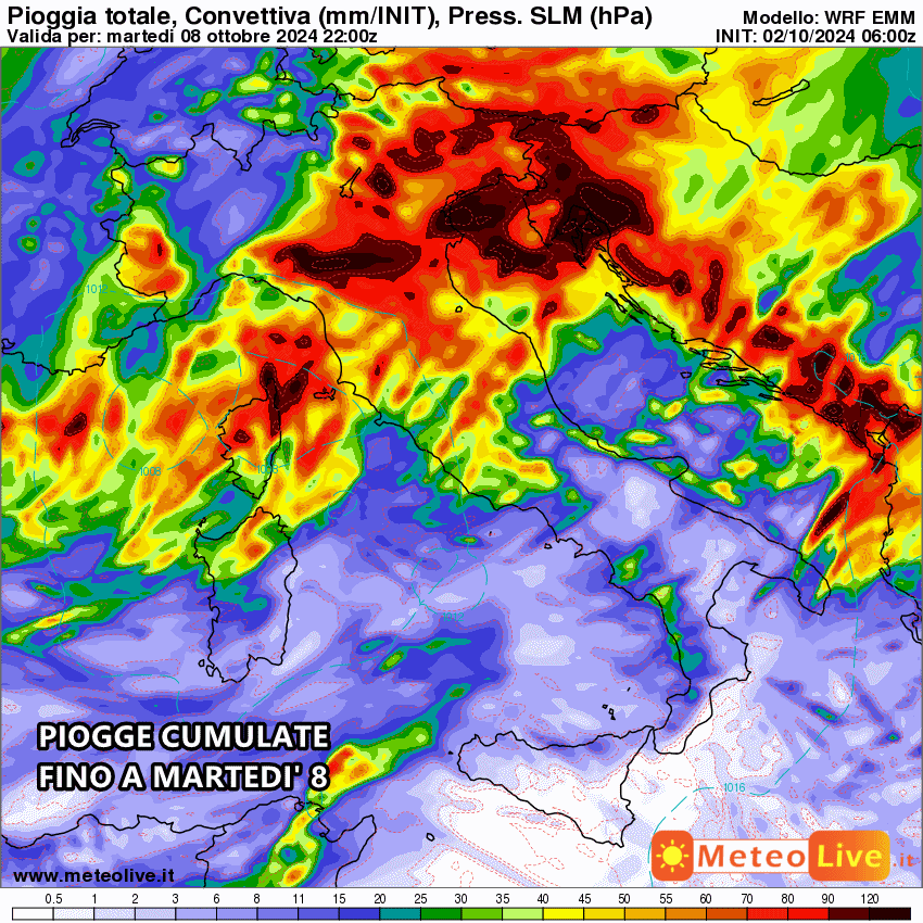 Tutte le piogge cumulate fino al 8 Ottobre: