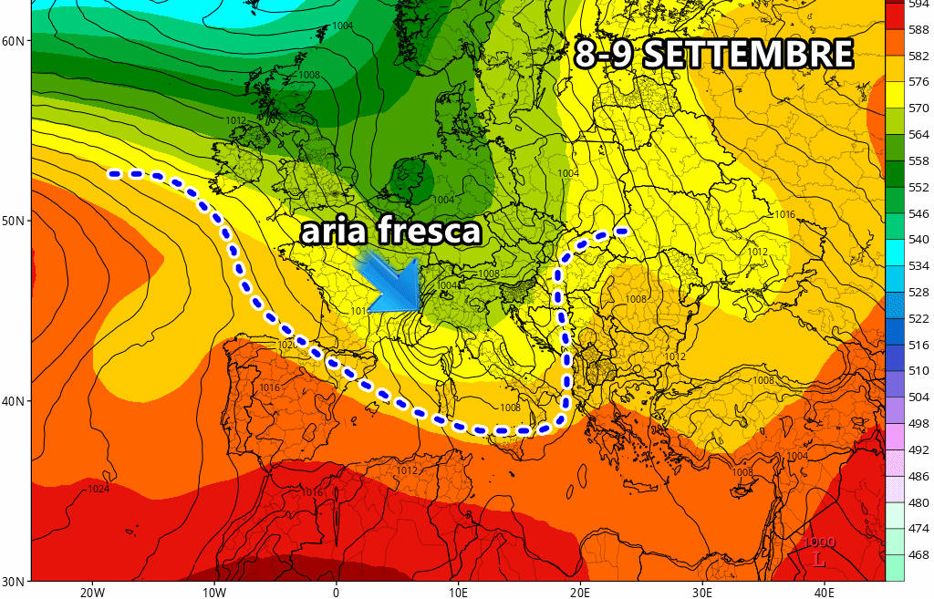 Il grande cambiamento del tempo, annunciato da giorni, è ormai alle porte. Da domani avanzerà un fronte freddo da ovest, legato ad una profonda depressione stazionante sull’Europa occidentale, che spazzerà via il caldo africano. Arriverà aria più fresca e gradevole, ma soprattutto sarà spazzata via tutta l’umidità accumulatasi negli ultimi due mesi specie al sud e sulle isole maggiori.