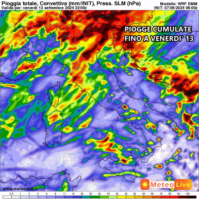 Tutte le piogge cumulate fino al 13 Settembre: