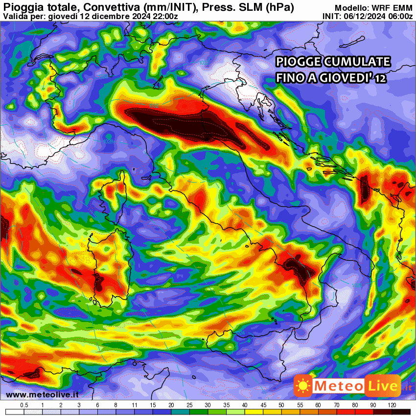 Tutta la pioggia prevista fino al 12 Dicembre: