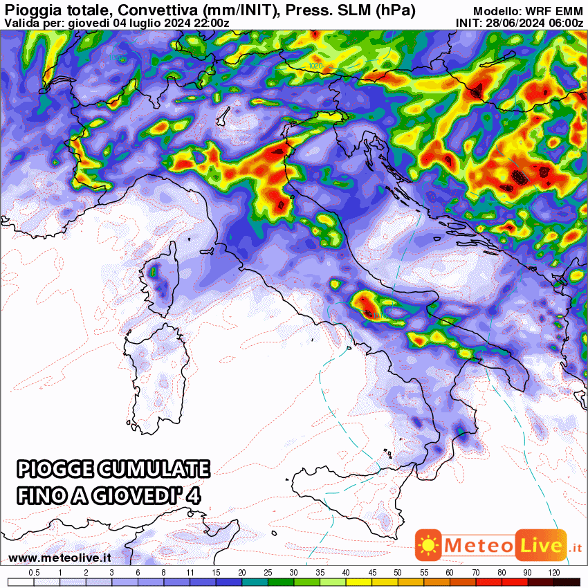 Le piogge cumulate fino al 4 Luglio: