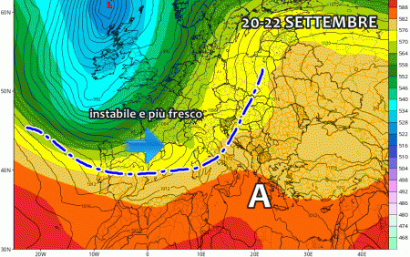 Venerdì 22 Settembre: tempo in peggiormento su gran parte del nord e del centro. Affluisce aria più fresca dalla Francia. Ultime ore di caldo al sud.