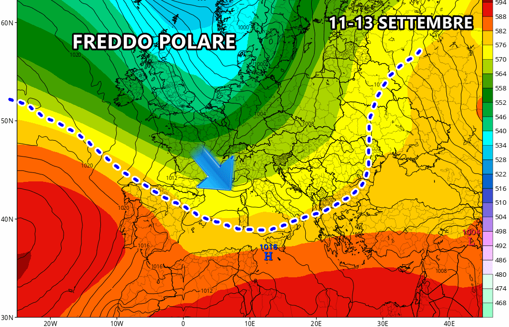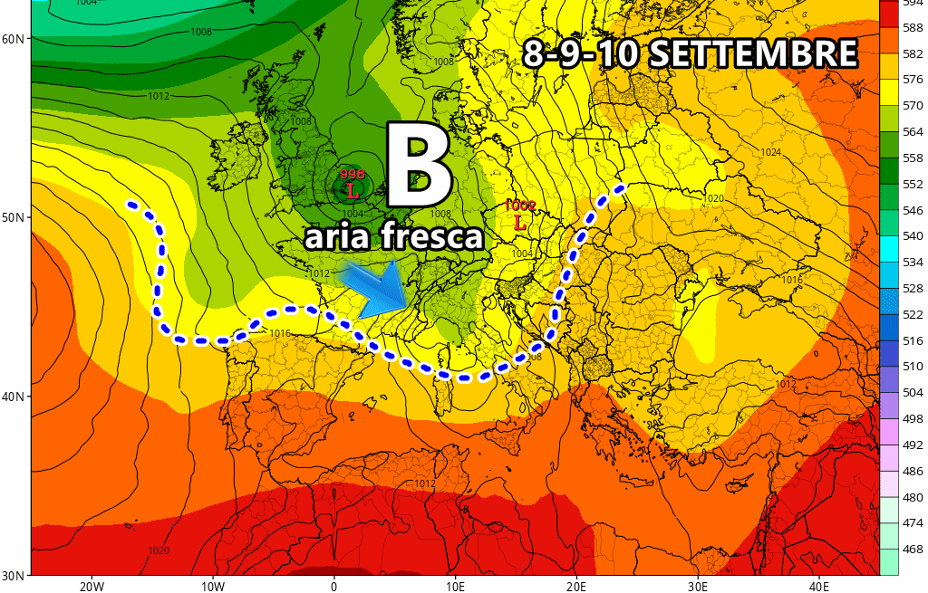 Martedì 10 Settembre: instabile su gran parte d’Italia, nocciolo fresco in quota attraverserà il Mediterraneo. Temperature in calo ovunque, fine dell’afa africana.