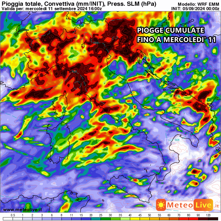 Domenica 8 Settembre: forte peggioramento con piogge e temporali al nord ed alto Tirreno, si avvicina il cuore della perturbazione. Temperature in aumento momentaneo.