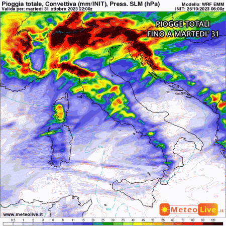 I forti contrasti termici dovuti a questi flussi umidi e tiepidi meridionali porteranno a un significativo peggioramento meteorologico su tutto il Nord e il medio-Alto Tirreno, con piogge diffuse e locali nubifragi. Allo stesso tempo, il vento di scirocco soffierà nel Sud Italia, contribuendo ad aumentare ulteriormente le temperature, come evidenziato dalle massime previste per il 31 ottobre.