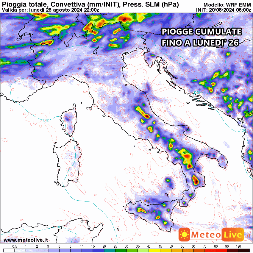 Tutte le piogge cumulate fino al 26 Agosto: