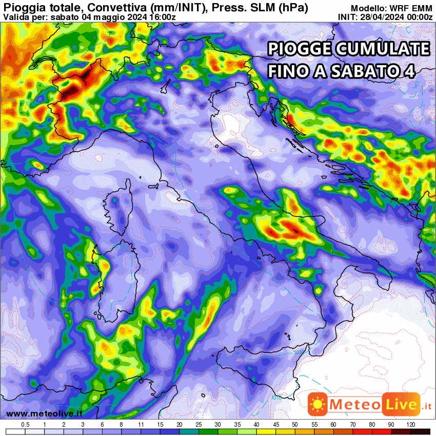 Le piogge cumulate fino al 4 Maggio: