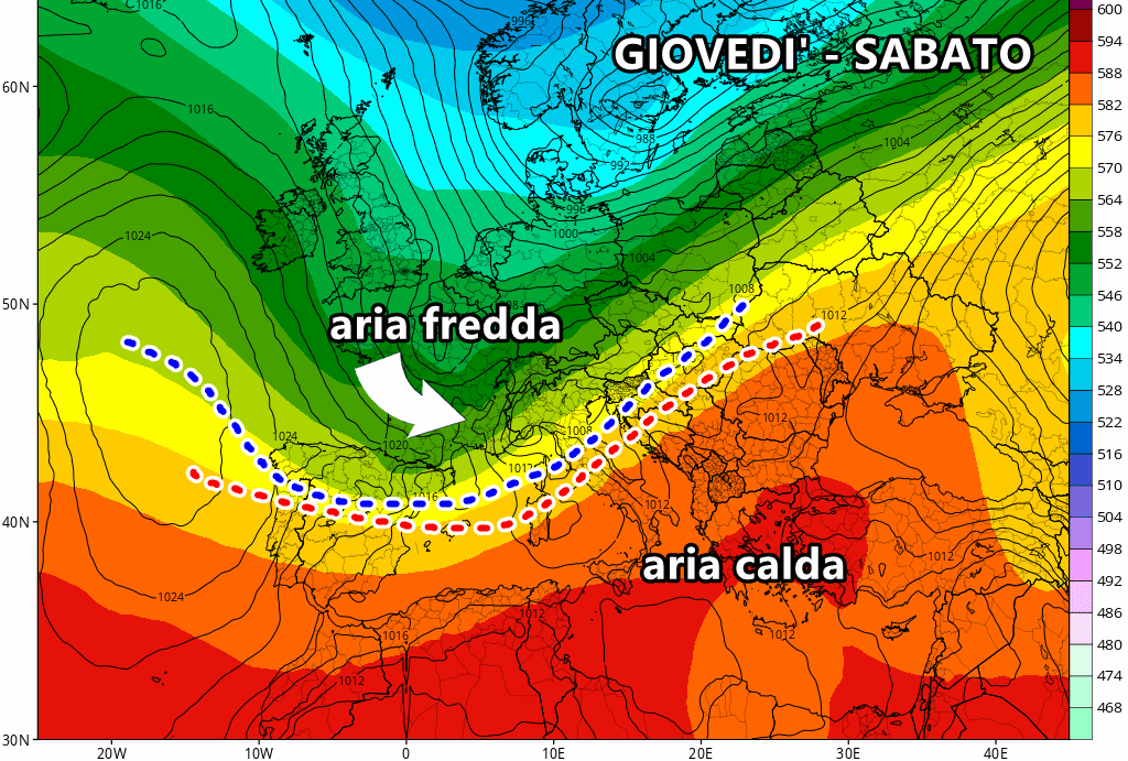 Il cambiamento arriverà nel corso di sabato pomeriggio, quando il fronte freddo attraverserà gran parte d’Italia favorendo un netto calo termico prima al centro Italia, infine al sud. Tra domenica e lunedì le temperature scenderanno nettamente in ogni angolo d’Italia, portandosi addirittura sotto le medie.
