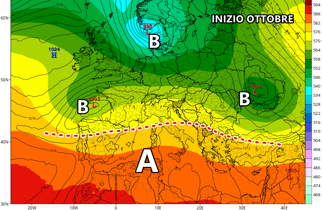 L’avvio di Ottobre riserverà un miglioramento su tutto il centro-sud, mentre il nord, potrebbe nuovamente vedersela con correnti umide sud-occidentali.