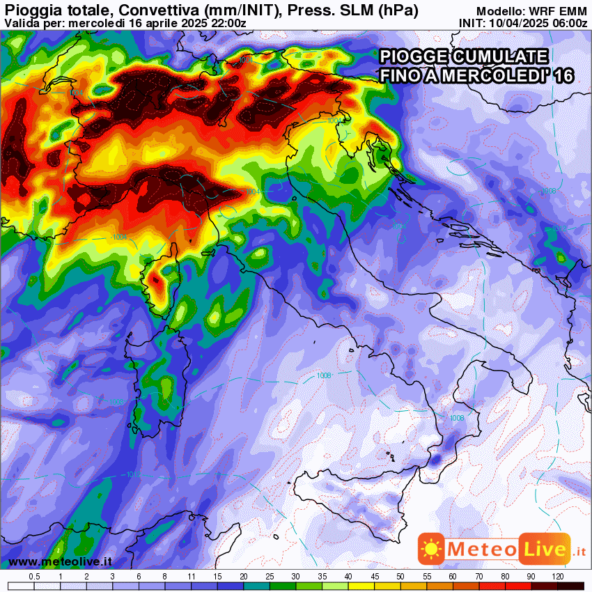 Il maltempo potrebbe accanirsi sulle regioni settentrionali, dove si prevedono accumuli pluviometrici davvero sostanziosi fino a giovedì. Addirittura, non si escludono picchi di oltre 400 mm su Alpi e Prealpi. Per questo tipo di dettagli, ci torneremo in altri aggiornamenti con informazioni più precise e affidabili.