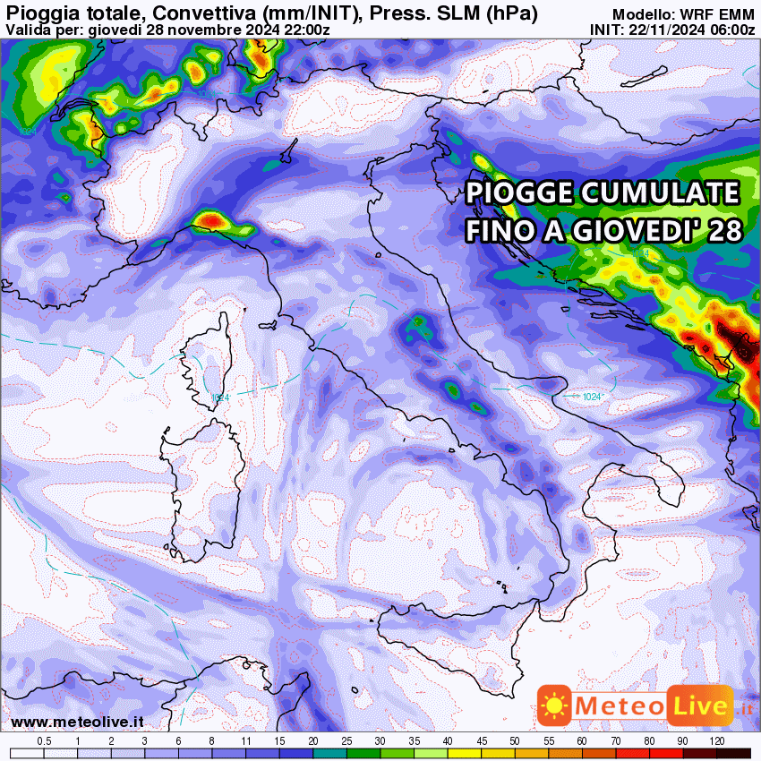 Tutta la pioggia prevista fino al 28 Novembre: