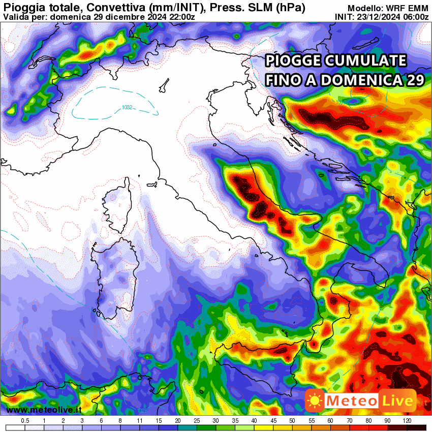 Tutta la pioggia prevista fino al 29 Dicembre: