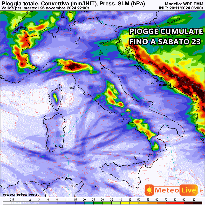 Tutta la pioggia prevista fino al 26 Novembre: