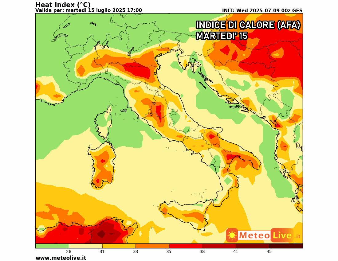 Il disagio aumenterà anche per effetto dell’umidità, con temperature percepite nettamente più alte di quelle effettive dell’aria, rendendo difficoltose le attività quotidiane.