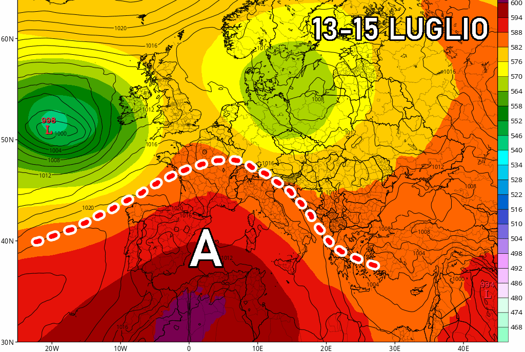 Diverso il destino del Nord, come già scritto nei precedenti paragrafi, che resterà più esposto a correnti instabili in arrivo da ovest: tra domenica e mercoledì sono attesi nuovi temporali, localmente intensi, specie su alpi, prealpi e pianure adiacenti. Possibili grandinate, colpi di vento e cali termici momentanei, ma inseriti in un contesto comunque caldo e afoso. Milano, Torino, Bologna e Verona potranno superare i 33-34°C tra lunedì e mercoledì.