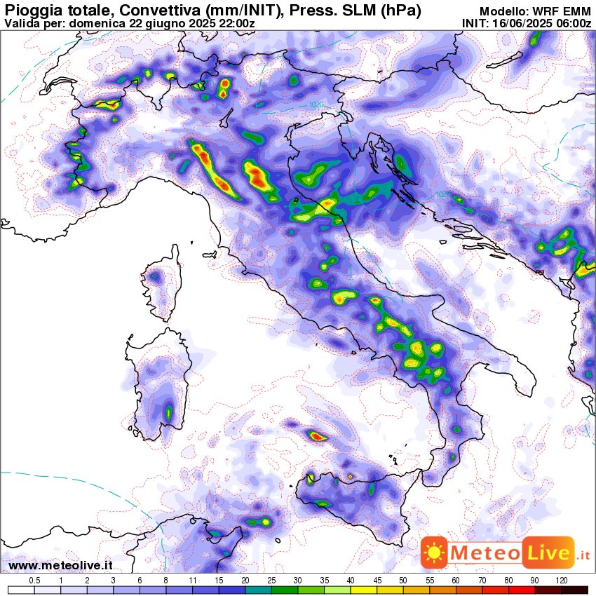 Il Nord Italia, almeno fino a venerdì, resterà ai margini dell’instabilità, ma non si esclude un ritorno di forti temporali in montagna e in pianura durante il weekend. Il merito di questo nucleo fresco, infatti, sarà quello di tenere alla larga il cuore caldo del promontorio nordafricano, favorendo lo sviluppo di questa instabilità prettamente pomeridiana o serale. Di seguito gli accumuli pluviometrici previsti nei prossimi sette giorni: