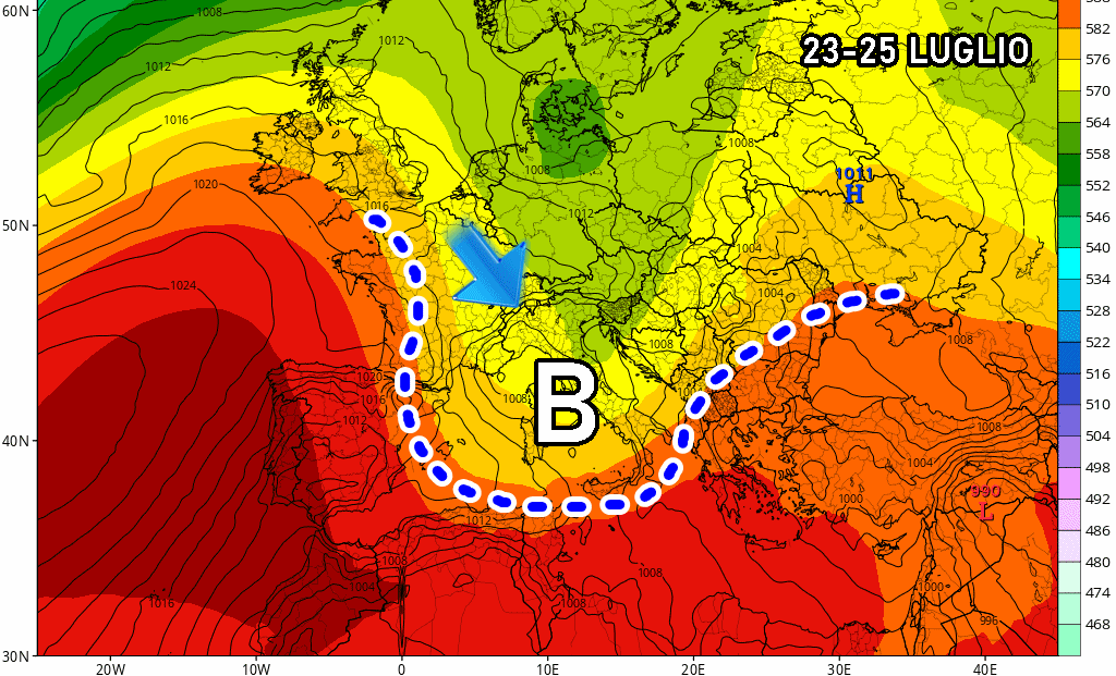 Mercoledì 23 porta grosse novità: al Sud il caldo resiste ancora con picchi oltre 39-40°C nei settori interni e afa opprimente su coste e pianure. Al Nord, invece, iniziano ad arrivare le avvisaglie di cambiamento: una saccatura atlantica, accompagnata da una vasta fascia di temporali e aria più fresca, lambirà Alpi, Prealpi e pianure, distribuendo piogge e grandinate anche intense.