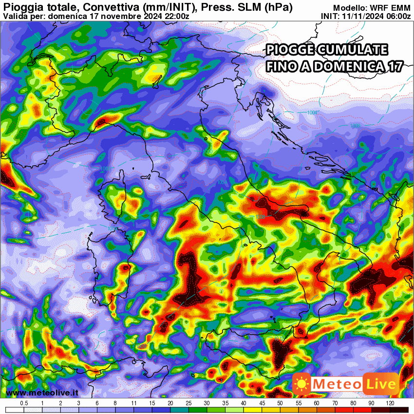 Tutta la pioggia prevista fino al 17 Novembre: